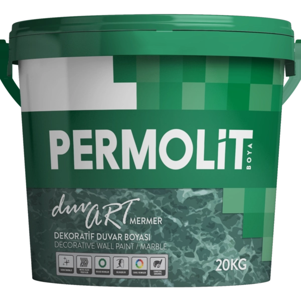 Duvart Mermer Dekoratif Duvar Boyası, su bazlı, yüzeylere mermer görünümü kazandıran, dekoratif, estetik, parlak, son kat iç cephe kaplamasıdır.